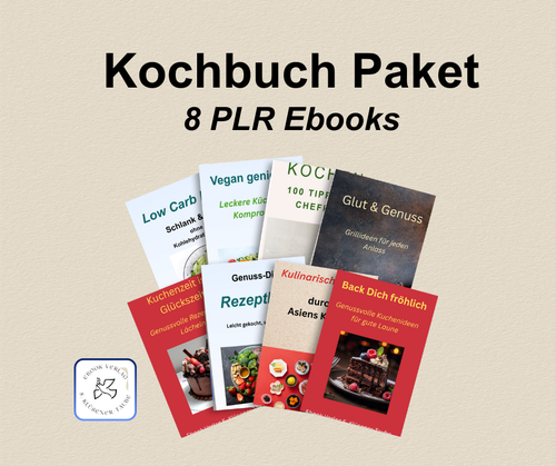Dieses Paket ist weit mehr als nur eine Sammlung von Rezepten – es ist eine komplette Grundlage für Genuss und Business zugleich. Enthalten sind 8 hochwertige Koch- und Rezept-Ebooks, die hunderte abwechslungsreiche Rezepte aus den Bereichen Kochen, Backen und Grillen bieten. Jedes Buch ist prall gefüllt mit kreativen Ideen, praktischen Schritt-für-Schritt-Anleitungen und Inspirationen für den Alltag in der Küche.